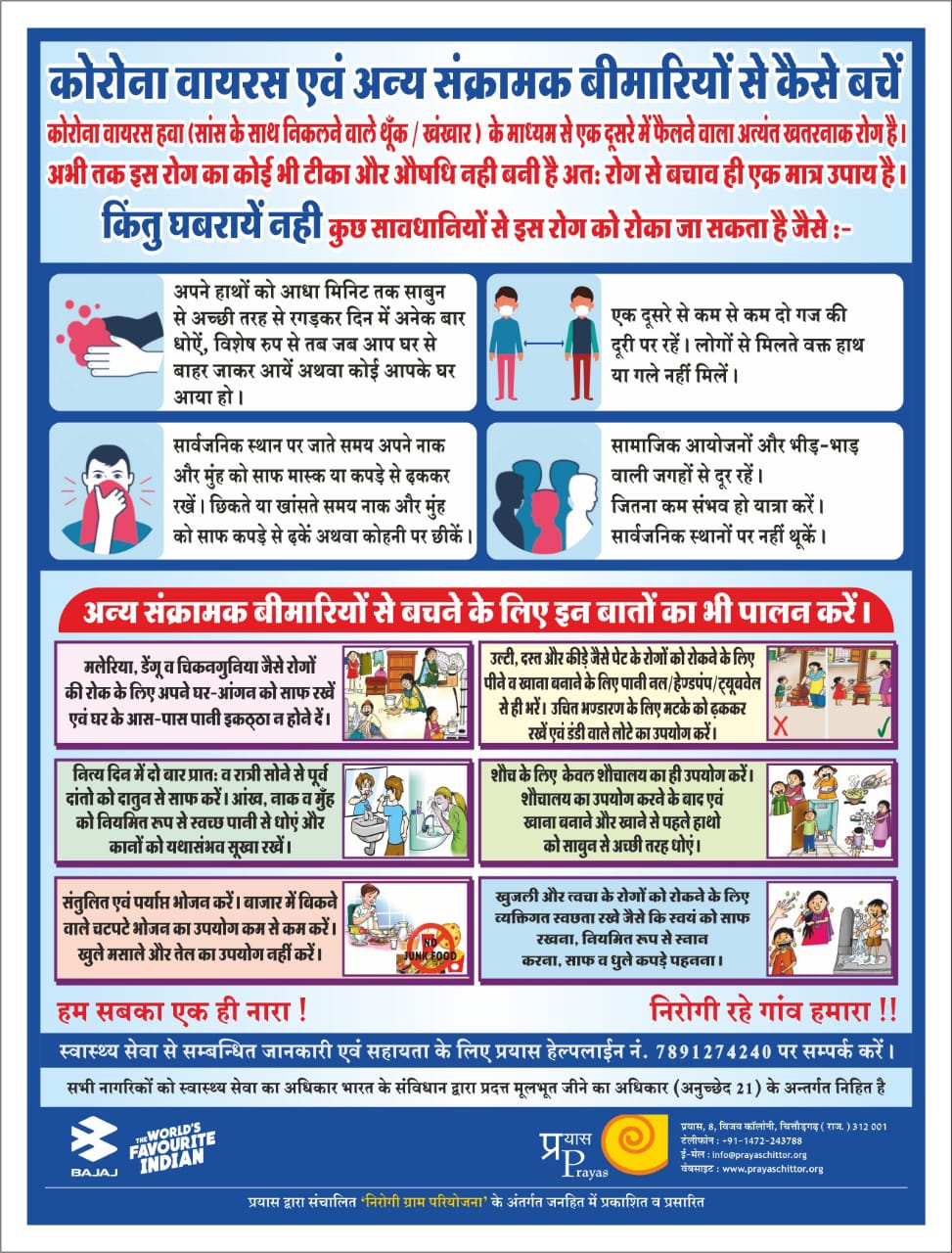 Poster- कोरोना वायरस एवं अन्य संक्रामक बीमारियों से कैसे बचें!
