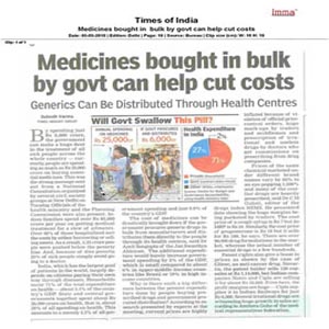 Calculations based on the data available of the burden of disease in India, unit cost of treatment of different ailments based on use of quality generic drugs at prevailing lowest prices and management done through standard procedures show that an additional Rs. 6000 crores (60 billions) every year will be required for treatment of the diseases which do not require hospitalisation. This is about Rs.50 per capita per year. This additional allocation will still not increase the total public spending in health to even 2% of the GDP. It is one tenth of what is provisioned for NREGS